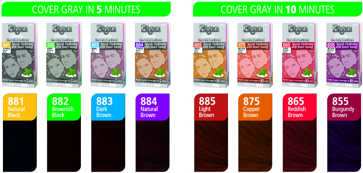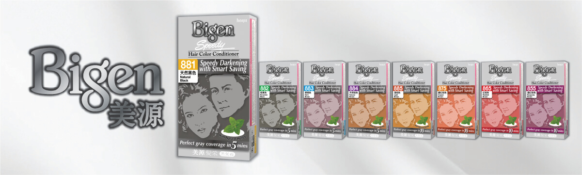 Bigen Speedy Hair Color Conditioner is our long time established brand. It covers your gray hair in only 5 minutes (except for 855, 865, 875, 885: have to wait for 10 minutes).