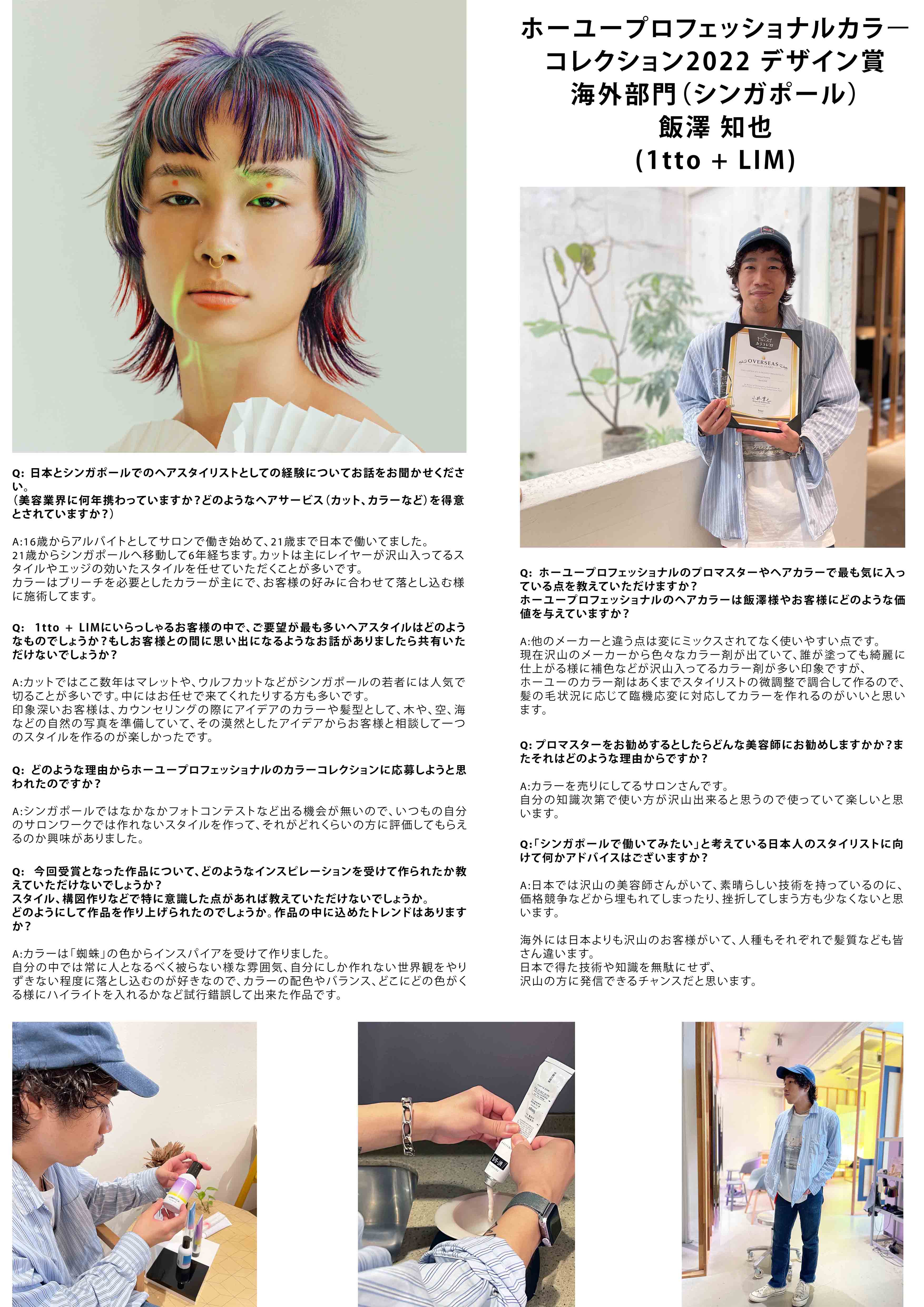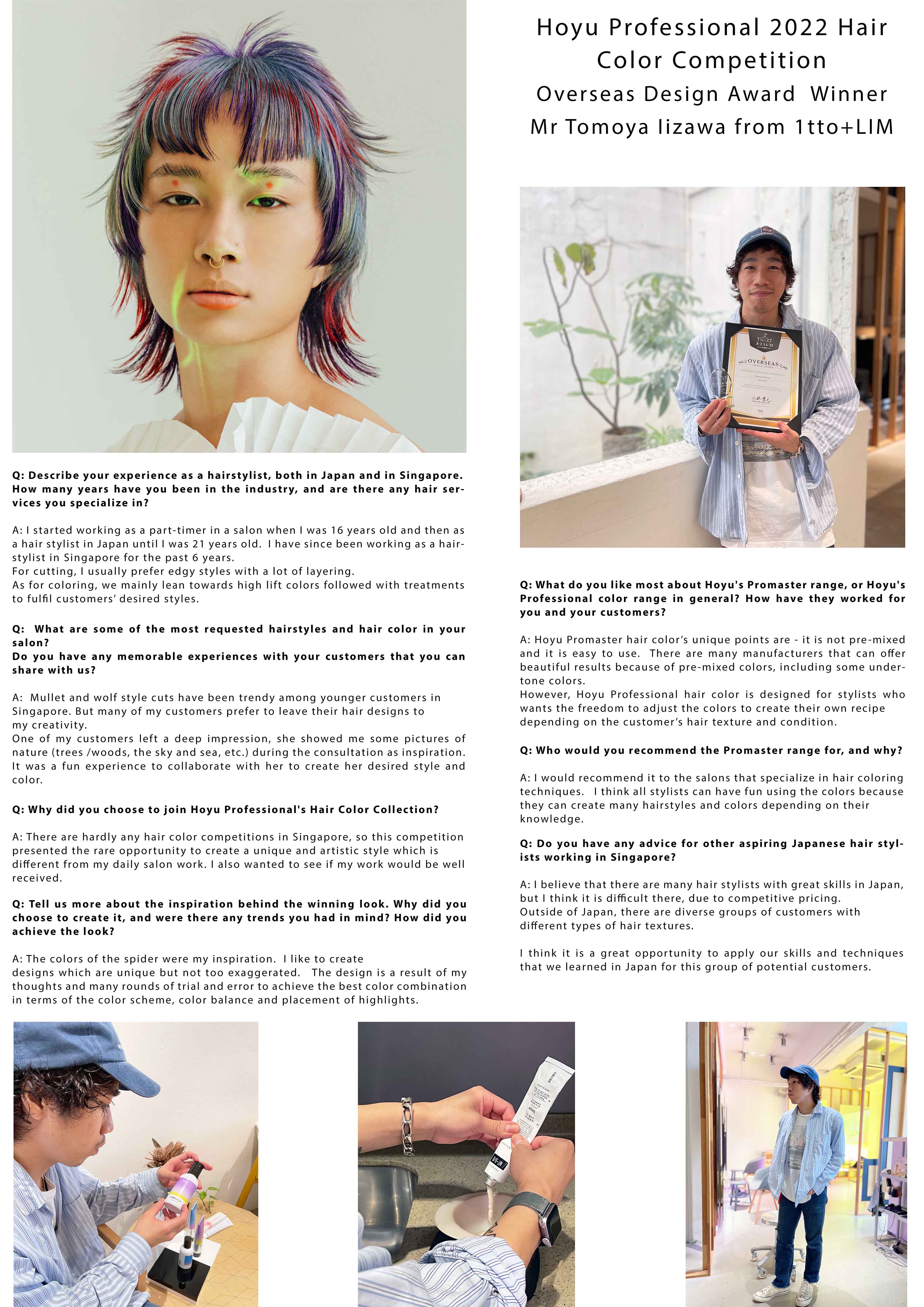 Congratulations! Mr Tomoya Iizawa @tomoyaiizawa from 1tto+LIM , Winner of the Overseas Design Award (Singapore) of Hoyu Professional 2022 Hair Color Competition!