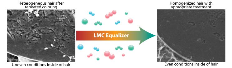 We identified hair repairing agents called “LMC Equalizer” which can deal with Heterogeneous Phenomena, that could not be solved with our previous theories or technologies. The important point is how to deal with only the damaged part.