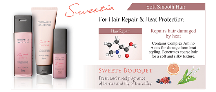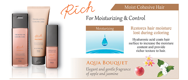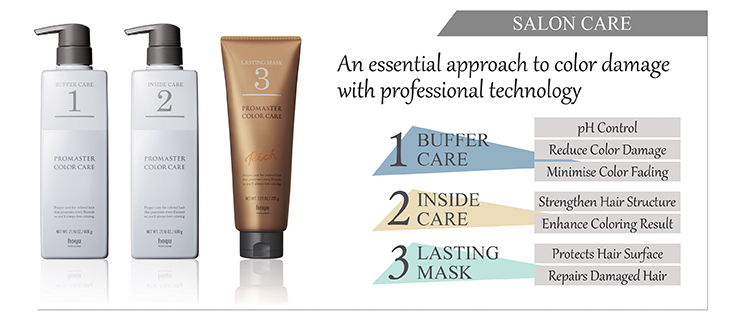 Fulfilling the promise of beautiful hair. PROMASTER COLOR CARE is for all women who wish to maintain beautiful colored hair and for professional hairstylists who wish to continuously nurture beautifully colored hair with the In-salon Treatment Technique.
