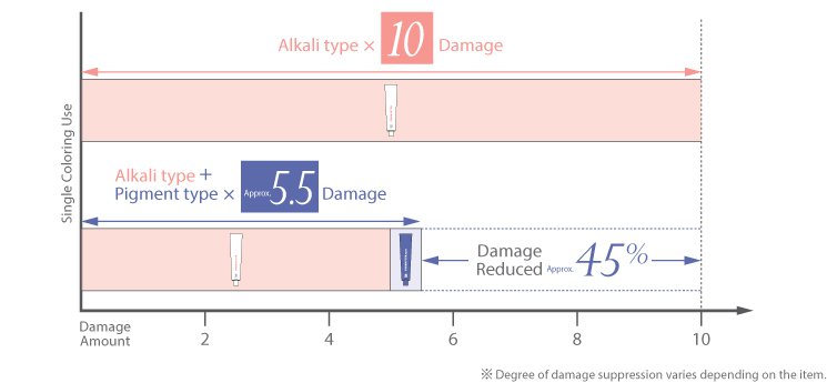 Damage of Pigment type is approximately 10% of the damage of Alkali type.