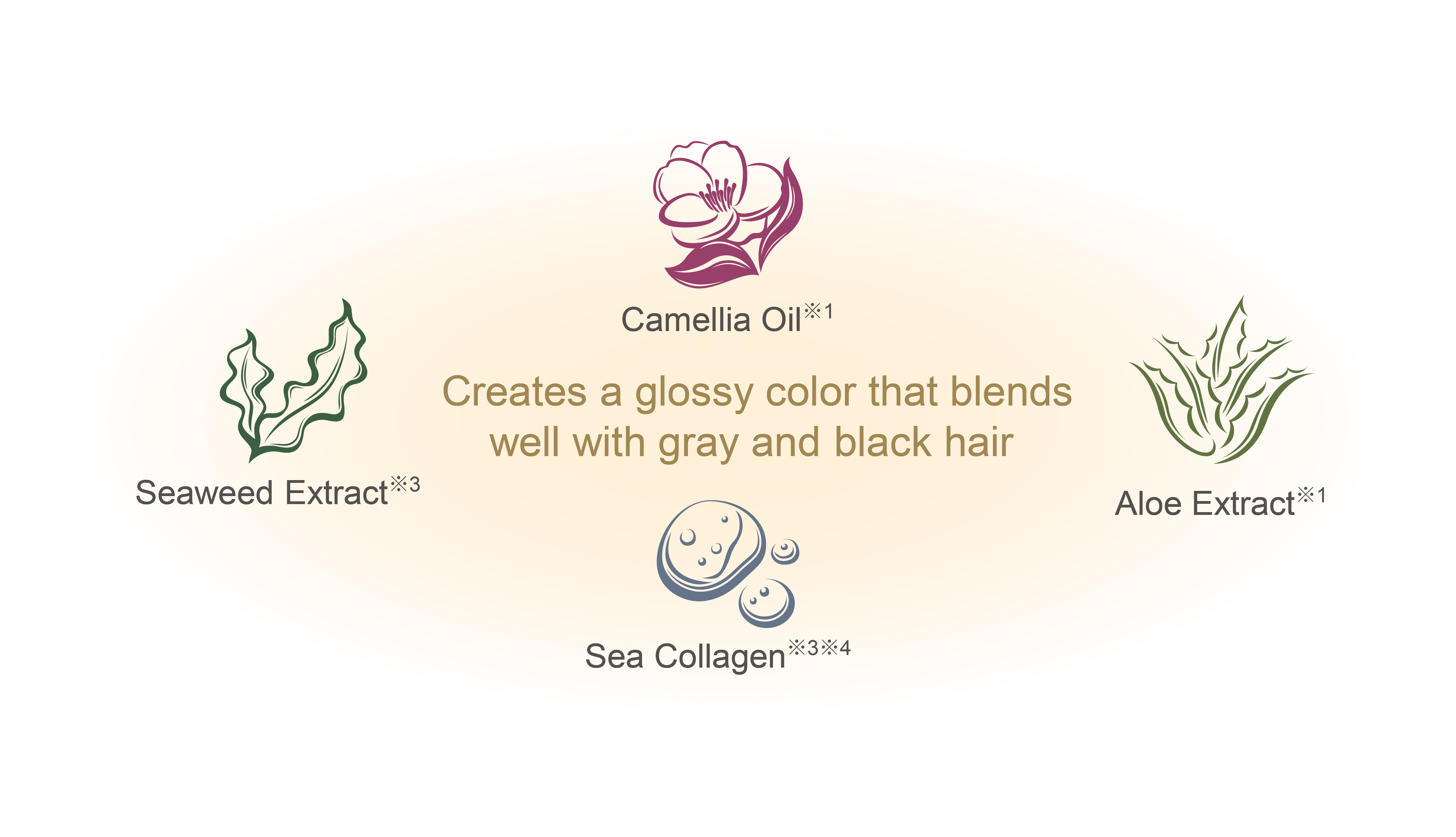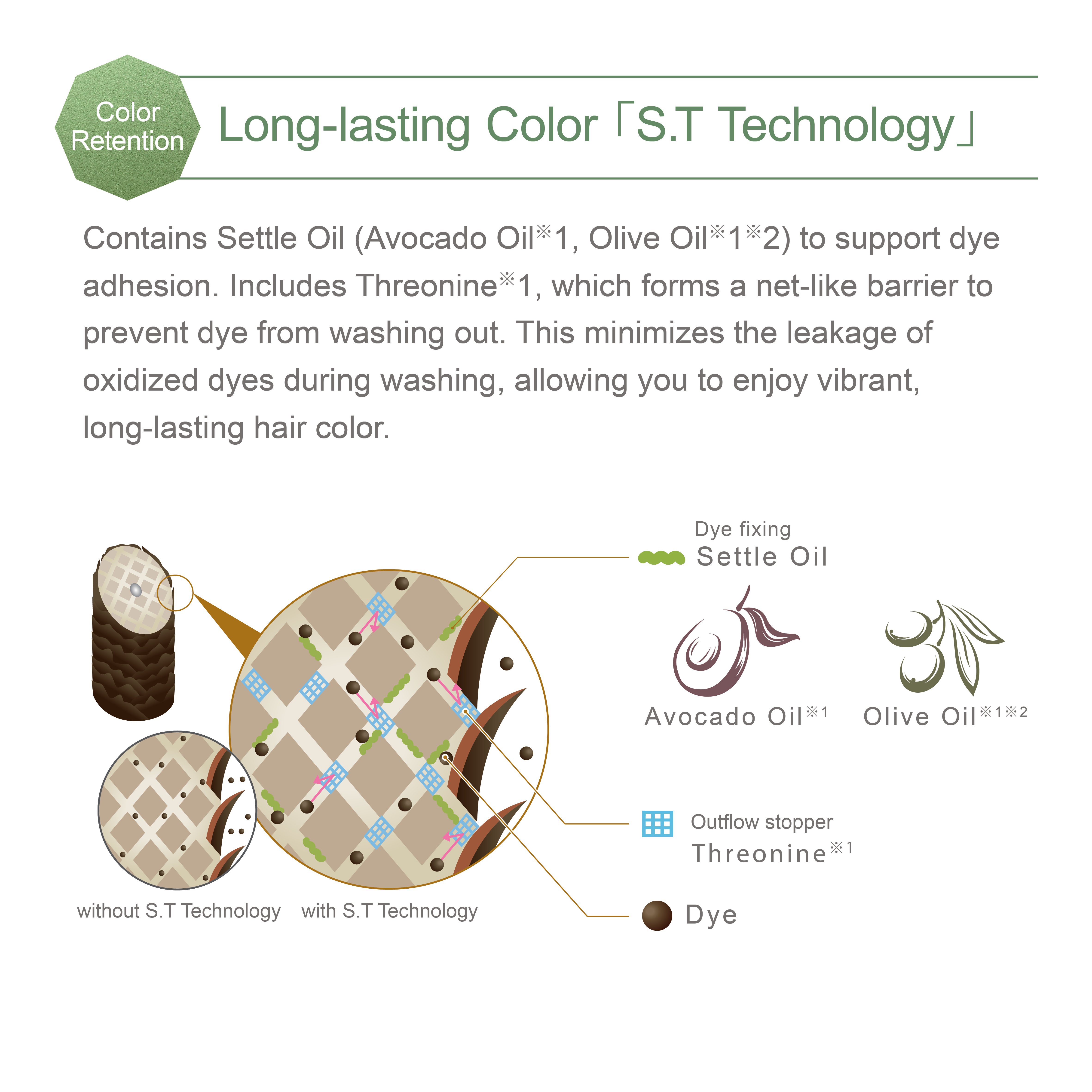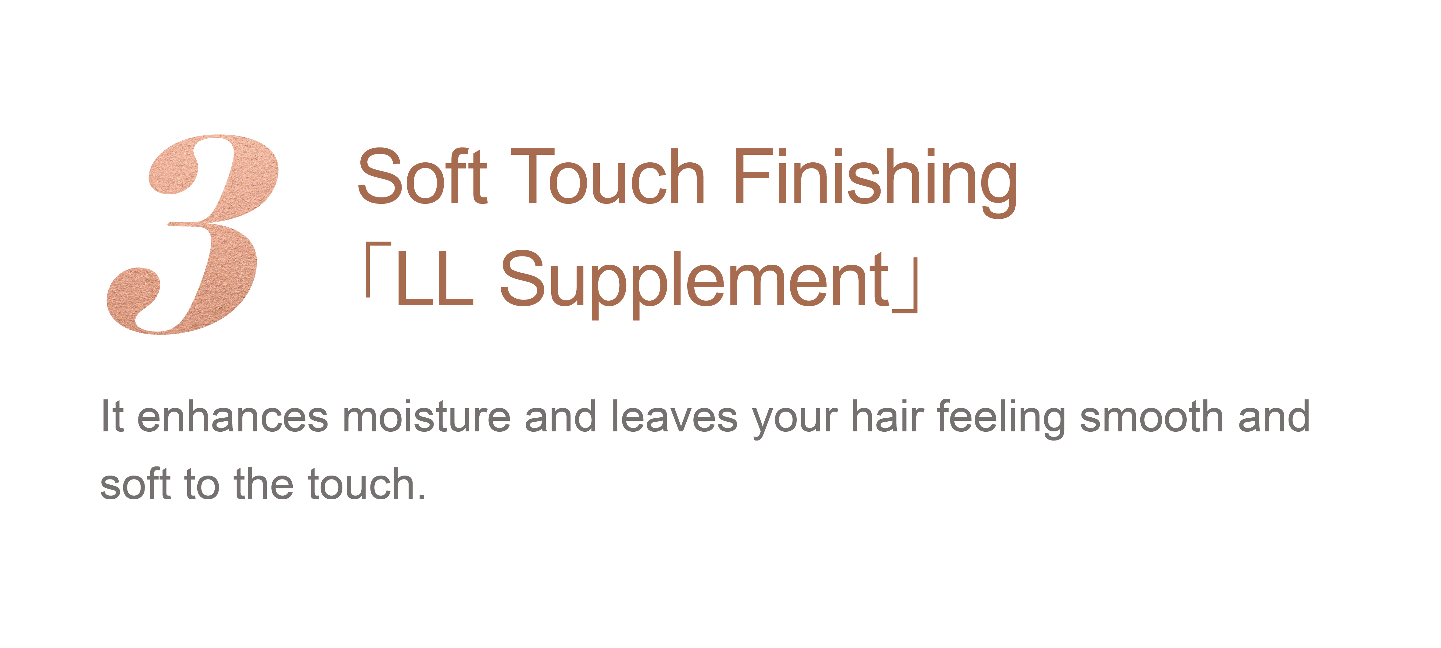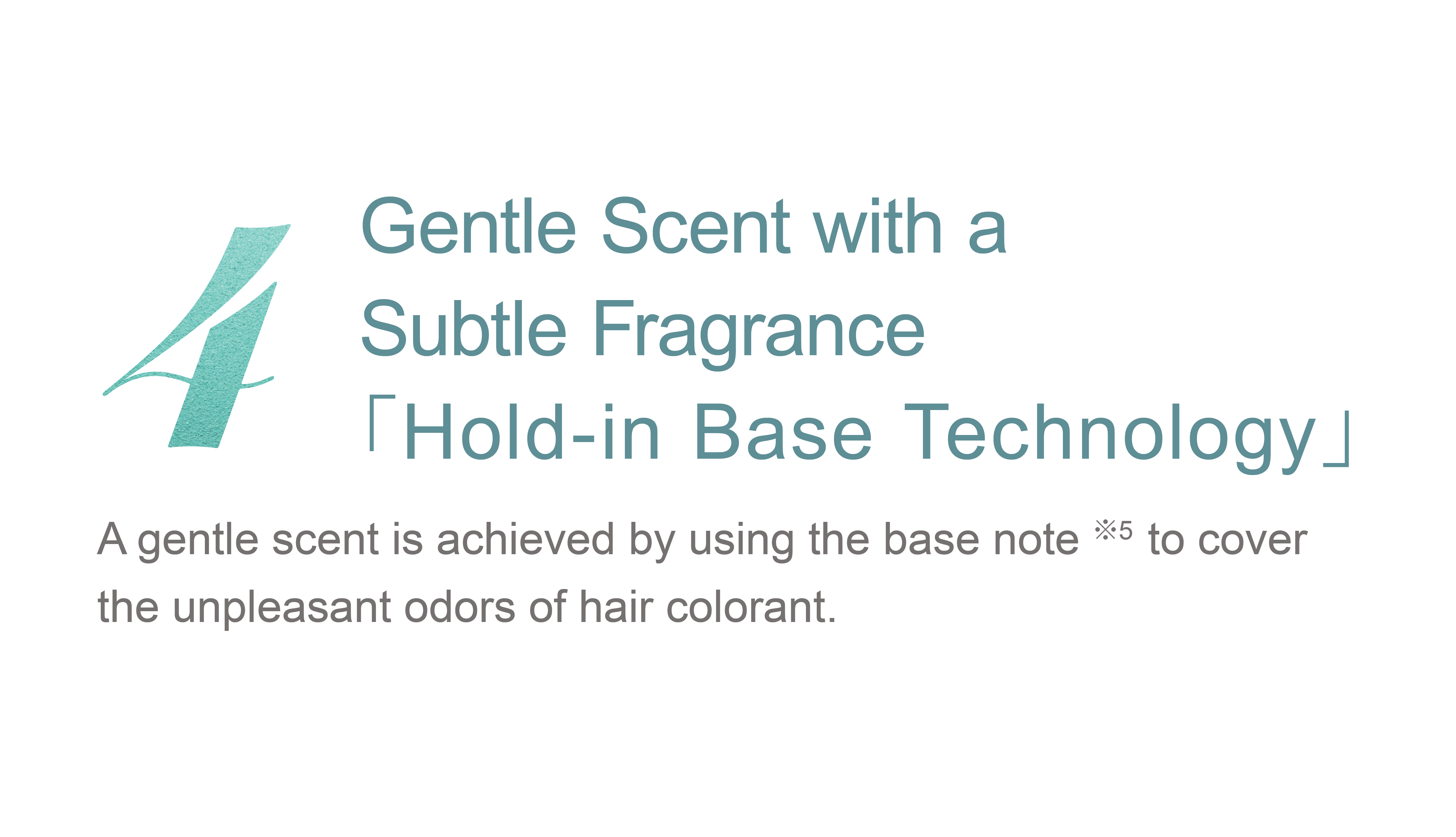 ※1 : Hair protecting ingredients ※2 : Olive Oil ※3 : Moisturizing ingredient ※4 : Water-soluble collagen liquid-3 ※5 : A fragrance that supports the overall scent, with a long-lasting and rich aroma. ※6 : A fragrance that rises quickly, with a light and fresh scent. ※7 : A fragrance that connects the top and base notes.